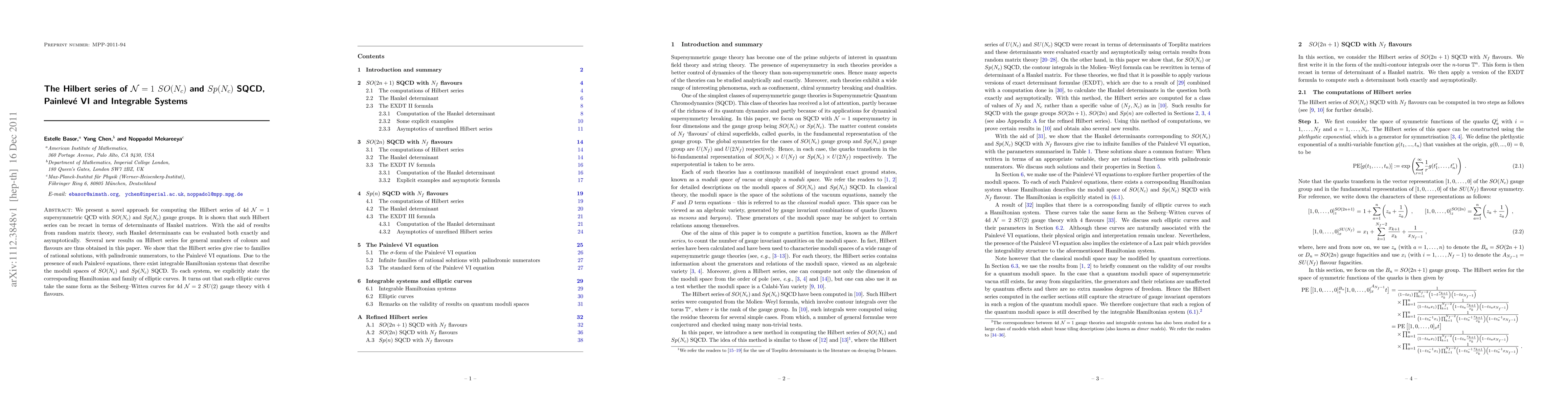 This paper presents a new approach to computing Hilbert series for 4d N=1 supersymmetric QCD with SO(N_c) and Sp(N_c) gauge groups, showing they relate to Painlev VI equations and integrable systems, with implications for Seiberg-Witten curves.