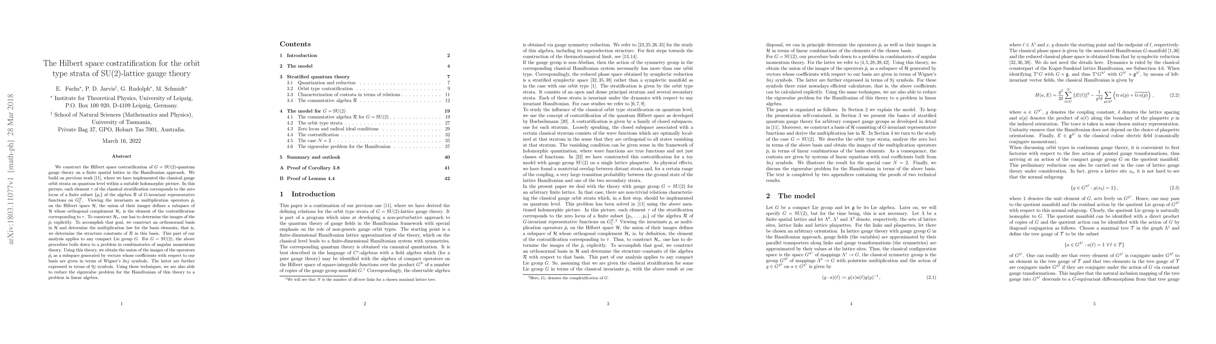 This paper constructs a Hilbert space costratification for SU(2)-quantum gauge theory on a lattice, reducing the eigenvalue problem to linear algebra using combinatorics of angular momentum theory.