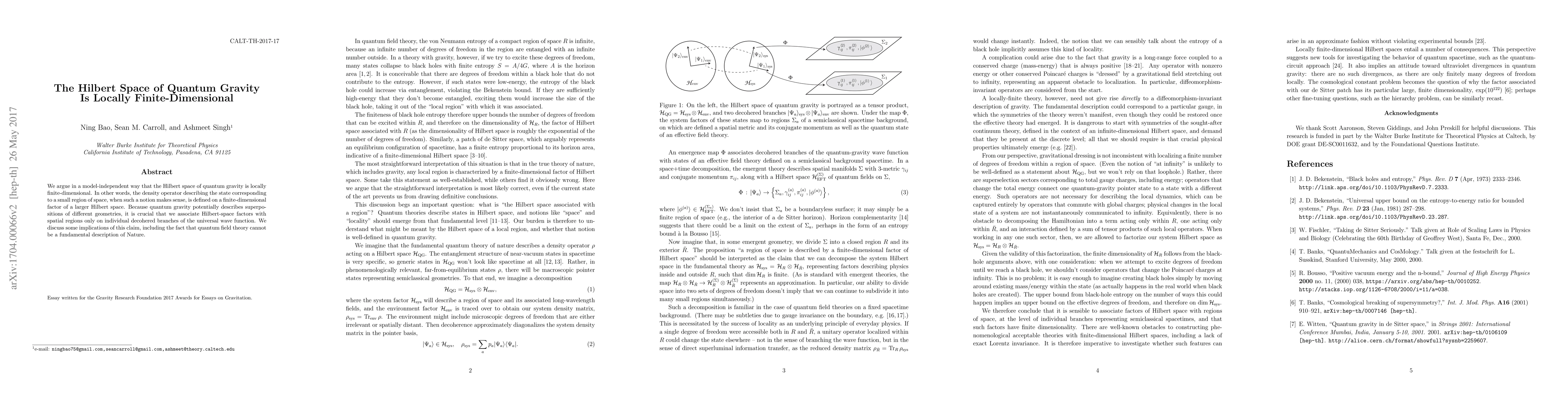 We argue in a model-independent way that the Hilbert space of quantum gravity is locally finite-dimensional. In other words, the density operator describing the state corresponding to a small region of space, when such a notion makes sense, is defined on a finite-dimensional factor of a larger Hilbert space. Because quantum gravity potentially describes superpo- sitions of different geometries, it is crucial that we associate Hilbert-space factors with spatial regions only on individual decohered branches of the universal wave function. We discuss some implications of this claim, including the fact that quantum field theory cannot be a fundamental description of Nature.