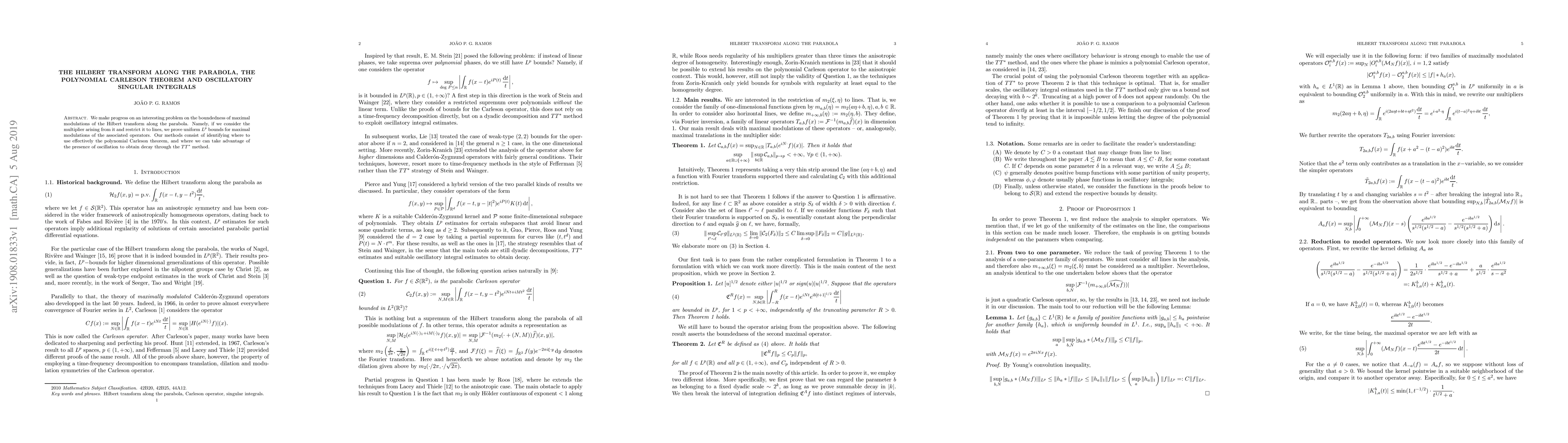 We make progress on an interesting problem on the boundedness of maximal modulations of the Hilbert transform along the parabola. Namely, if we consider the multiplier arising from it and restrict it to lines, we prove uniform $L^p$ bounds for maximal modulations of the associated operators. Our methods consist of identifying where to use effectively the polynomial Carleson theorem, and where we can take advantage of the presence of oscillation to obtain decay through the $TT^*$ method.