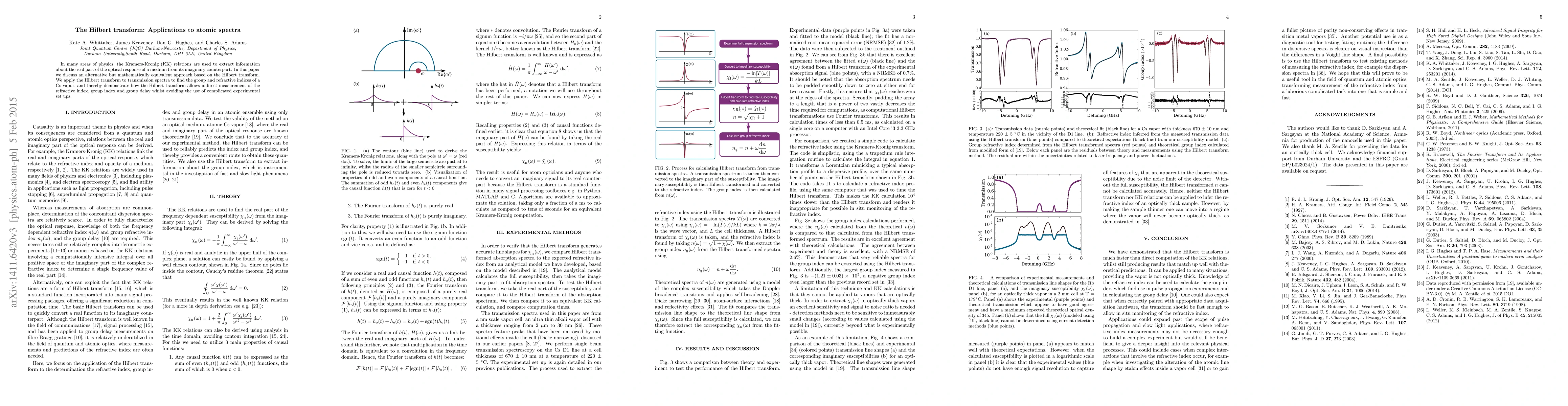 This paper explores the Hilbert transform as an alternative to the Kramers-Kronig relations for extracting optical response information from transmission spectra. It demonstrates the method's application to Cs vapor spectra to measure group and refractive indices, showcasing its potential for simplifying complex experimental setups.