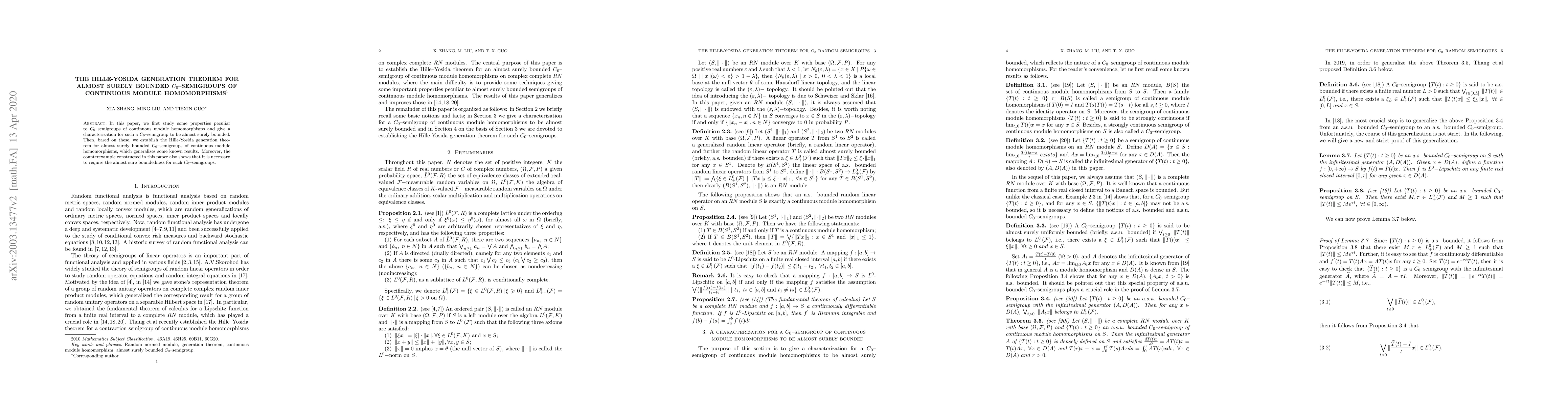 This paper characterizes almost surely bounded $C_{0}$-semigroups of continuous module homomorphisms and establishes the Hille-Yosida generation theorem for these semigroups, generalizing existing results and highlighting the necessity of almost sure boundedness through a constructed counterexample.