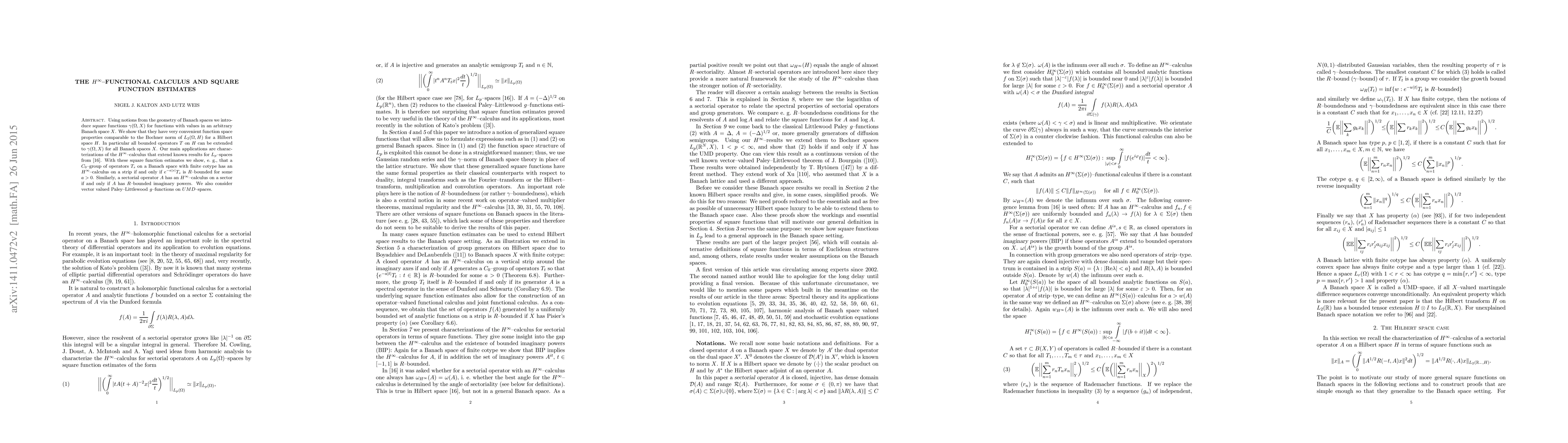 This paper introduces square functions $\gamma(\Omega,X)$ in Banach spaces and extends the $H^{\infty}$-functional calculus to these spaces. It demonstrates the equivalence of these square function estimates with $R$-boundedness conditions for operator groups and sectorial operators, providing new characterizations of the $H^{\infty}$-calculus.
