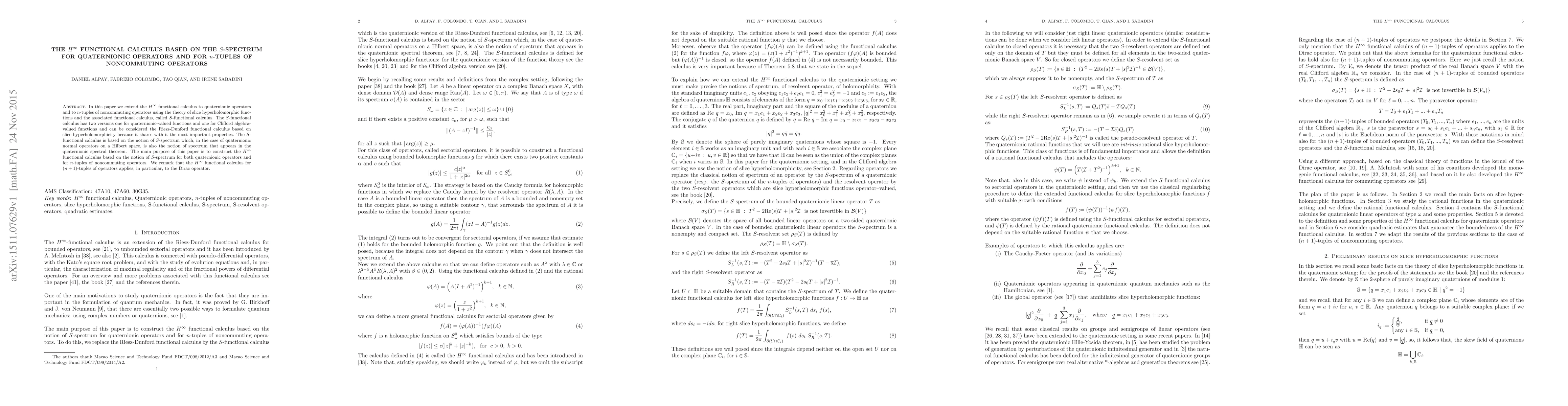 Irene Sabadini, Fabrizio Colombo, David P. Kimsey et al.