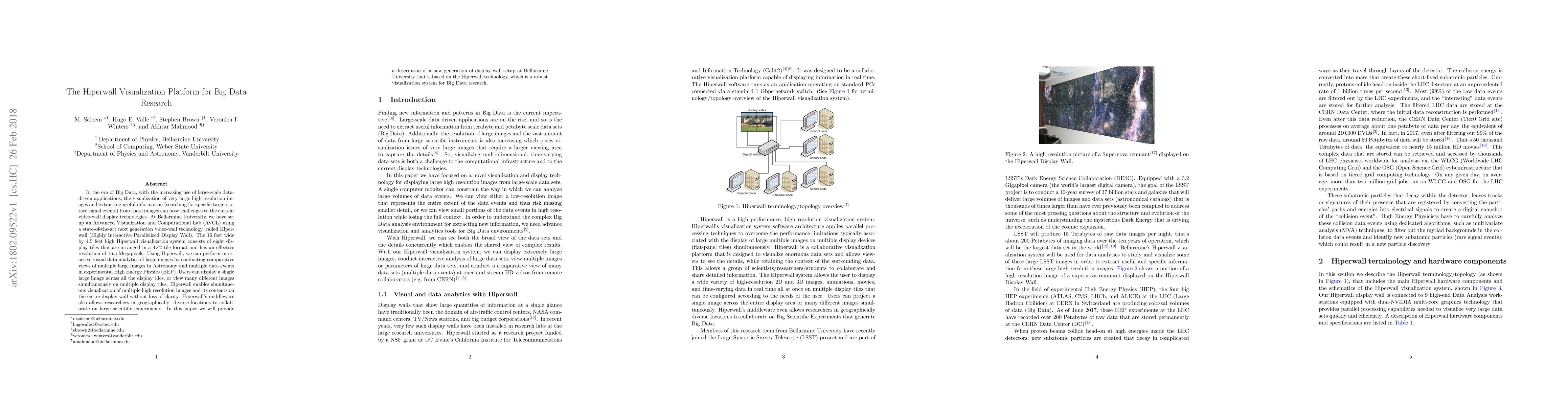 The Hiperwall visualization platform at Bellarmine University's Advanced Visualization and Computational Lab enables interactive visual data analytics of large high-resolution images, facilitating collaborative research in fields like Astronomy and High Energy Physics, and overcoming limitations of traditional video-wall technologies.