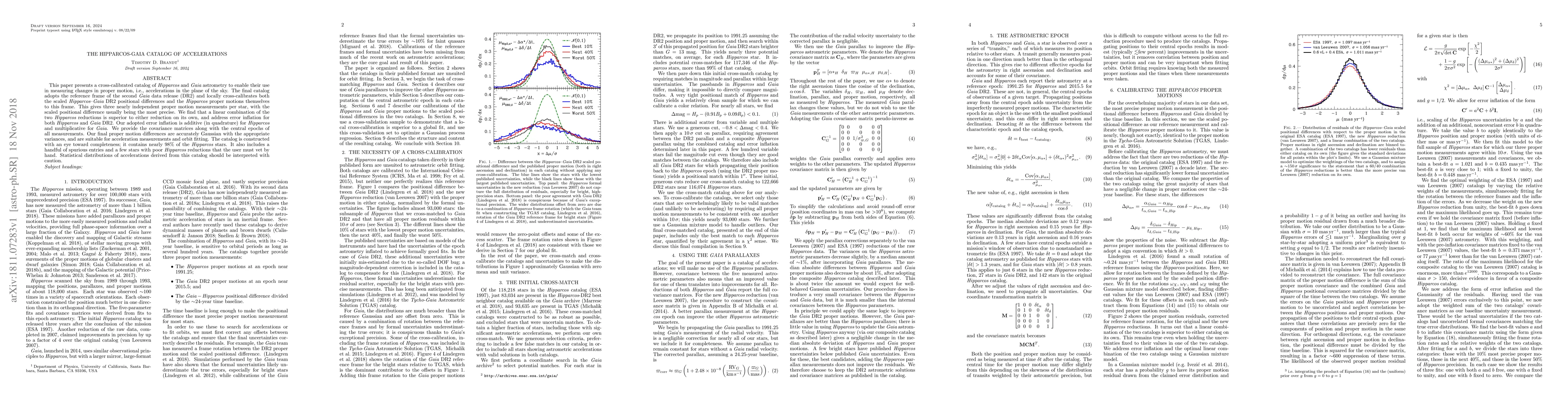 This paper presents a cross-calibrated Hipparcos-Gaia catalog for measuring stellar accelerations, adopting Gaia DR2 frame and providing nearly independent proper motion measurements per star, with a focus on accuracy and completeness. Users should manually vet a few spurious entries and stars with poor reductions.