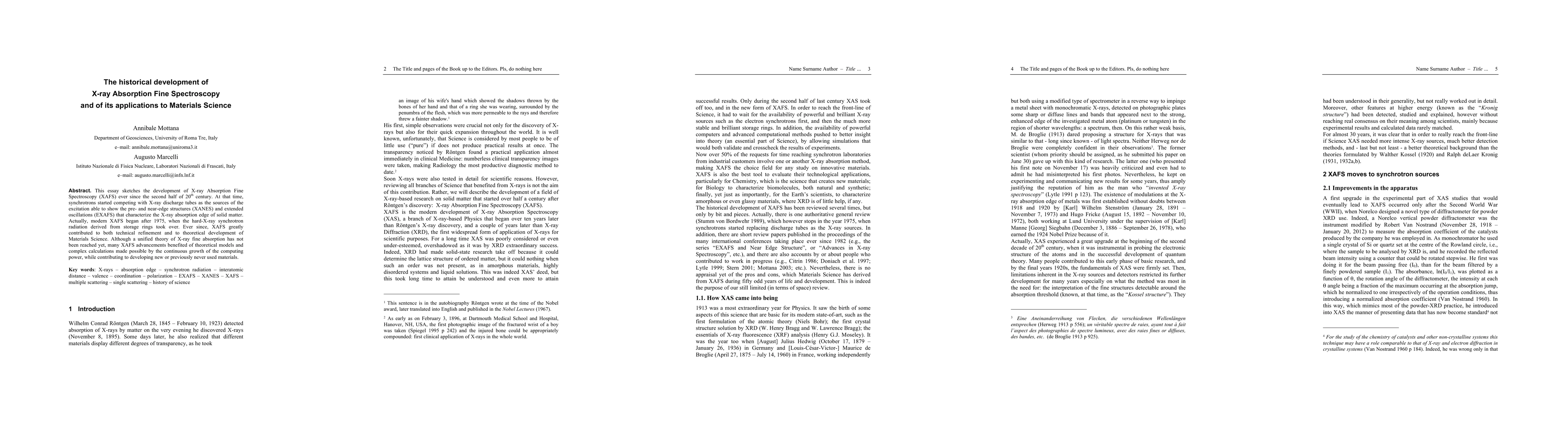 This essay traces the evolution of X-ray Absorption Fine Spectroscopy (XAFS) since the late 20th century, highlighting its significant contributions to Materials Science through advancements in synchrotron technology and theoretical models. Despite the lack of a unified theory, XAFS has driven both technical and theoretical progress in material development.