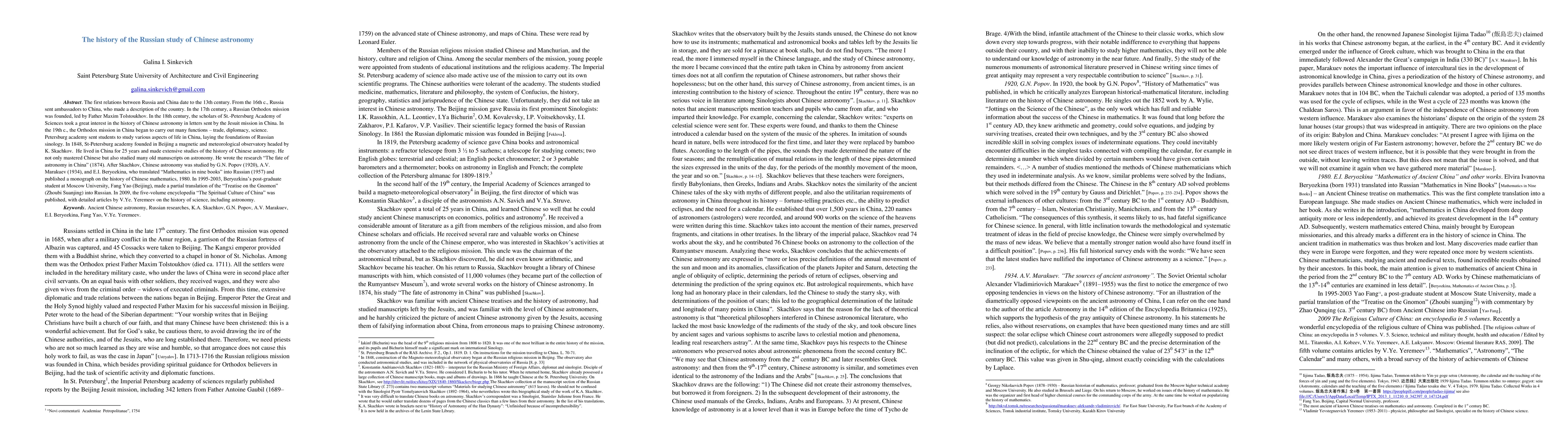 A short history of Russian researches in Chinese astronomy in 19-20 centuries