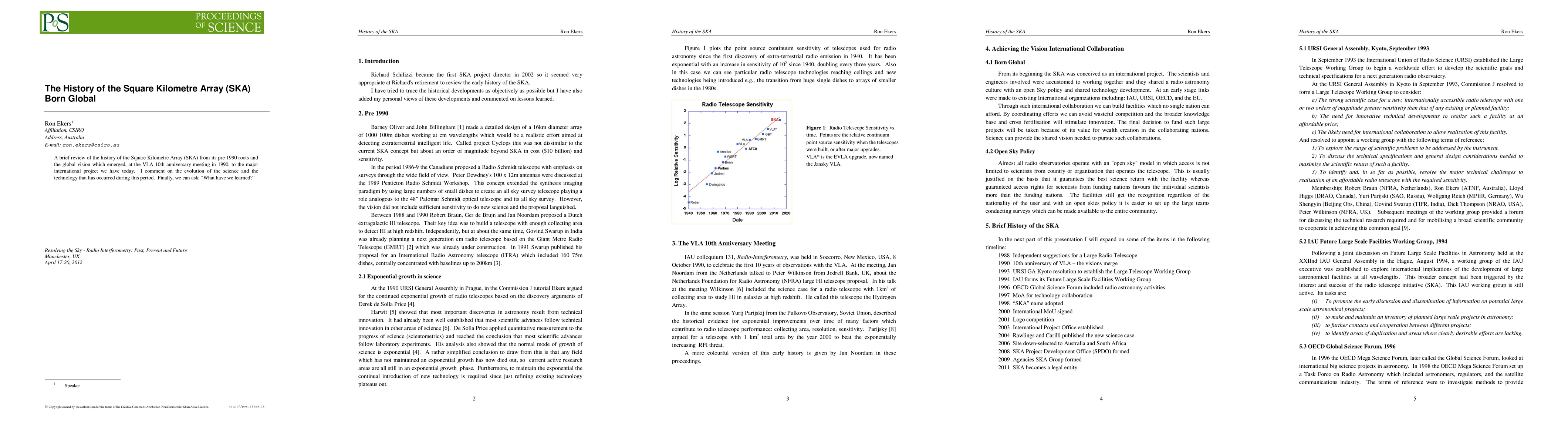 A brief review of the history of the Square Kilometre Array (SKA) from its pre 1990 roots and the global vision which emerged, at the VLA 10th anniversary meeting in 1990, to the major international project we have today. I comment on the evolution of the science and the technology that has occurred during this period. Finally, we can ask: "What have we learned?"