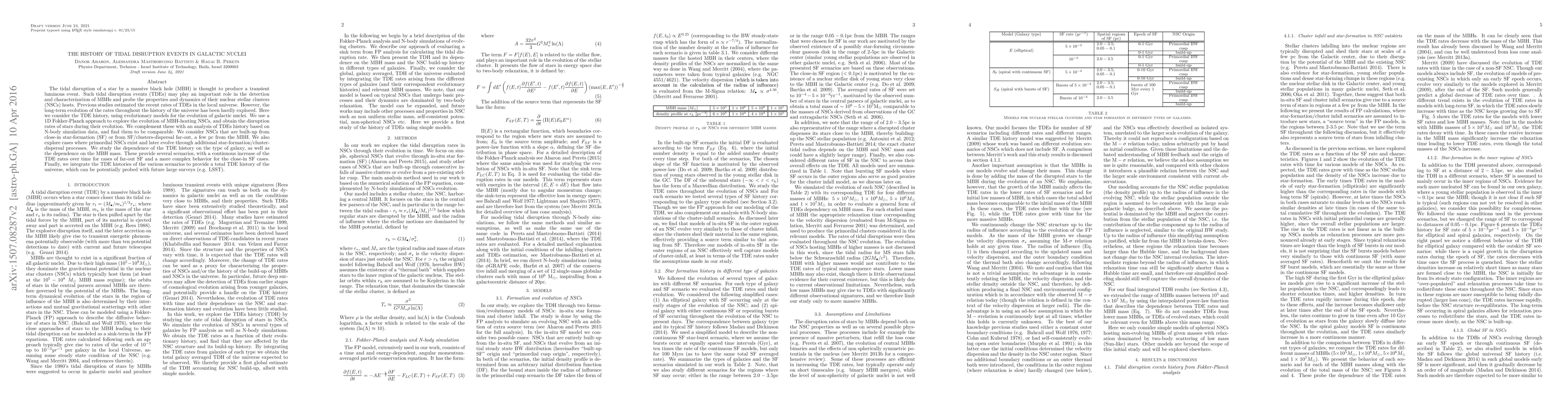 The paper presents a comprehensive model for TDE rate history, incorporating star formation and cluster infall scenarios, and validates it using both Fokker-Planck and N-body simulations.