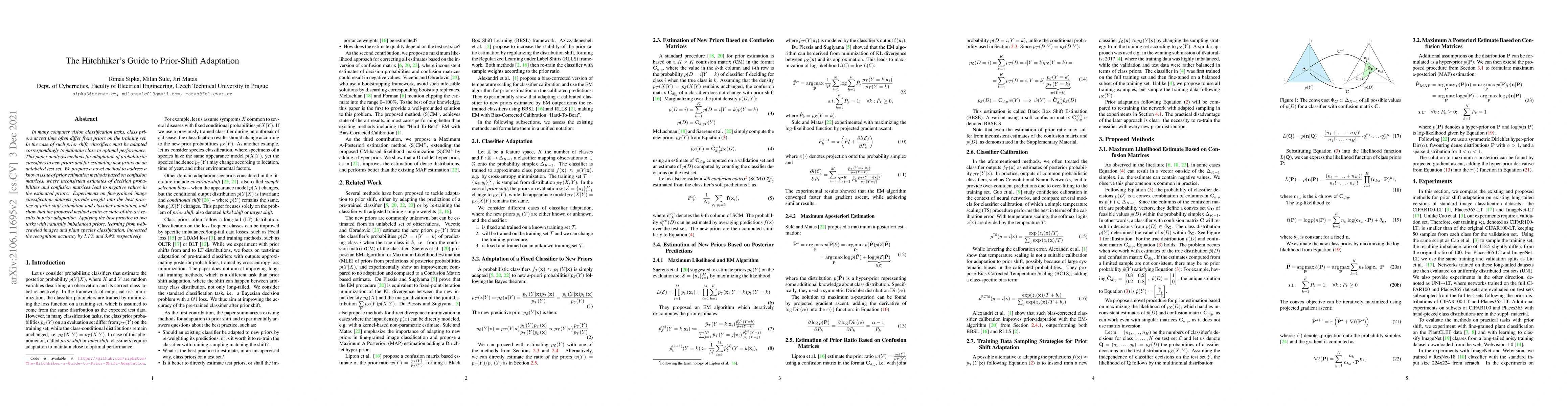 This paper proposes a novel method for adapting probabilistic classifiers to new priors in computer vision classification tasks, addressing the issue of negative prior estimates. Experimental results on fine-grained image datasets show state-of-the-art performance in prior shift estimation and adaptation, improving recognition accuracy by 1.1% and 3.4% in web-crawled images and plant species classification.