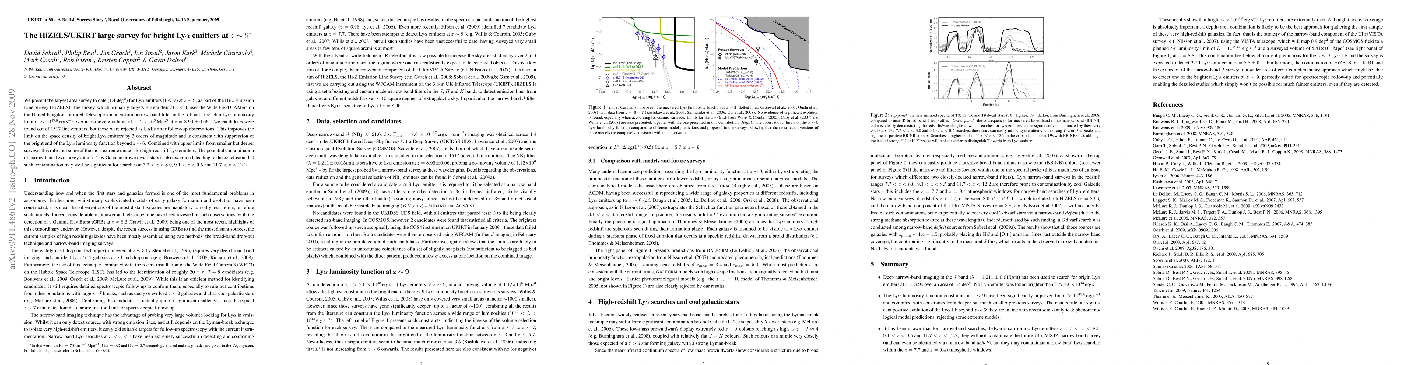 This study presents the largest survey to date (1.4 deg²) for Lyman-alpha emitters at z~9 using the UKIRT telescope, finding no confirmed bright LAEs and improving the upper limit on their space density by 3 orders of magnitude. The survey also highlights potential contamination from Galactic brown dwarfs in certain redshift ranges.