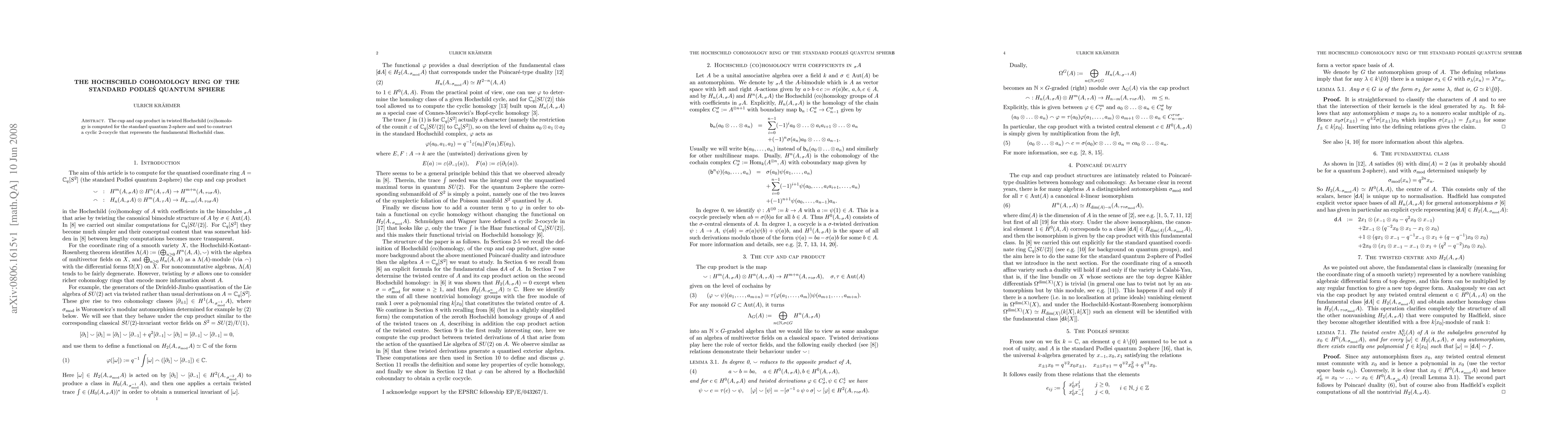 Summary: This paper computes the cup and cap products in twisted Hochschild (co)homology for the standard quantum 2-sphere, constructing a cyclic 2-cocycle that represents the fundamental Hochschild class. The results provide insights into the structure of the Hochschild cohomology ring of this quantum space.