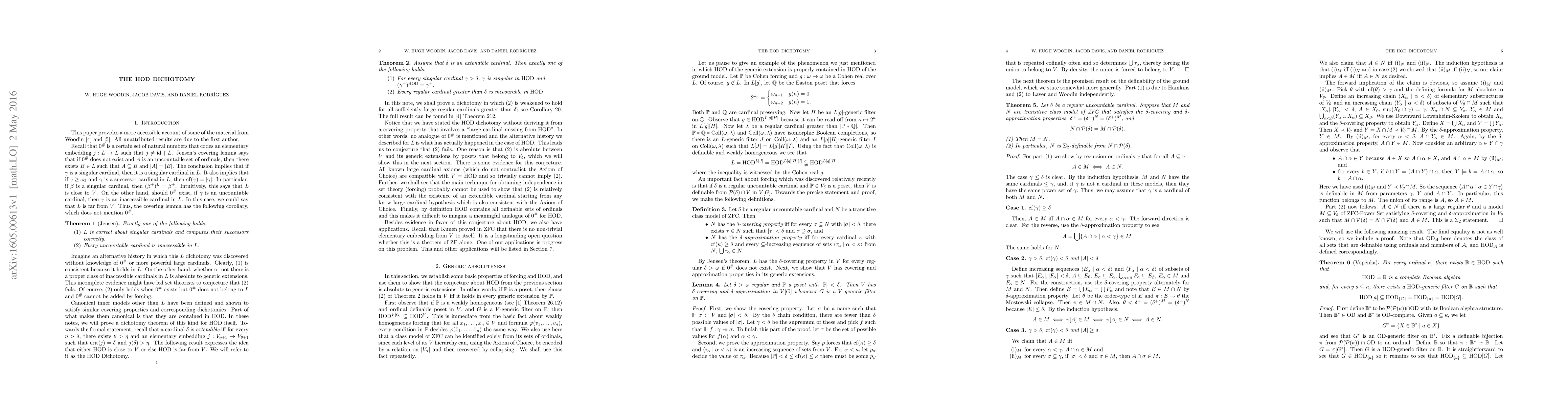 This paper introduces Woodin's work on suitable extender models, defining the HOD conjecture and proving its equivalence to a formulation related to weak extender models for supercompactness, along with discussing its implications.