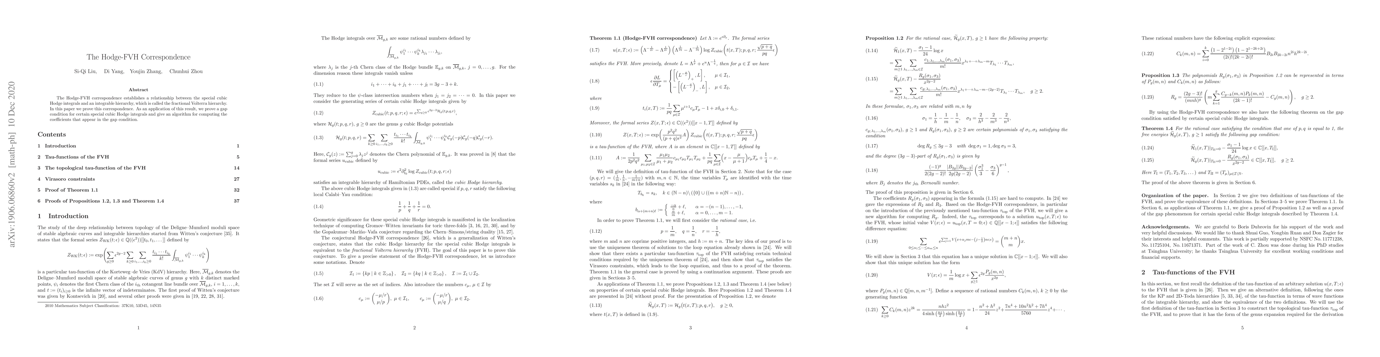 The Hodge-FVH correspondence establishes a relationship between the special cubic Hodge integrals and an integrable hierarchy, which is called the fractional Volterra hierarchy. In this paper we prove this correspondence. As an application of this result, we prove a gap condition for certain special cubic Hodge integrals and give an algorithm for computing the coefficients that appear in the gap condition.