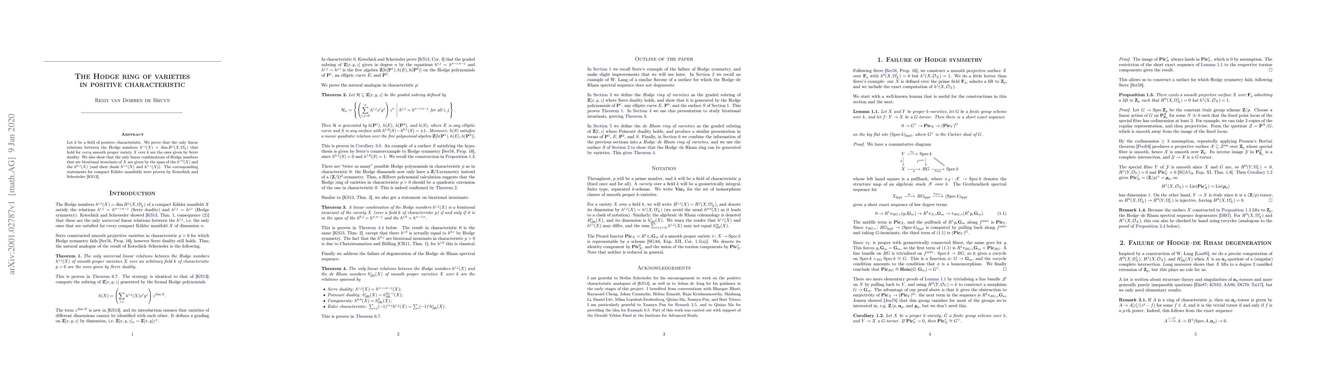 This paper proves that in positive characteristic, the only linear relations between Hodge numbers of smooth proper varieties are those dictated by Serre duality. It also establishes that the birational invariants of these varieties are spanned by certain Hodge numbers and their duals.