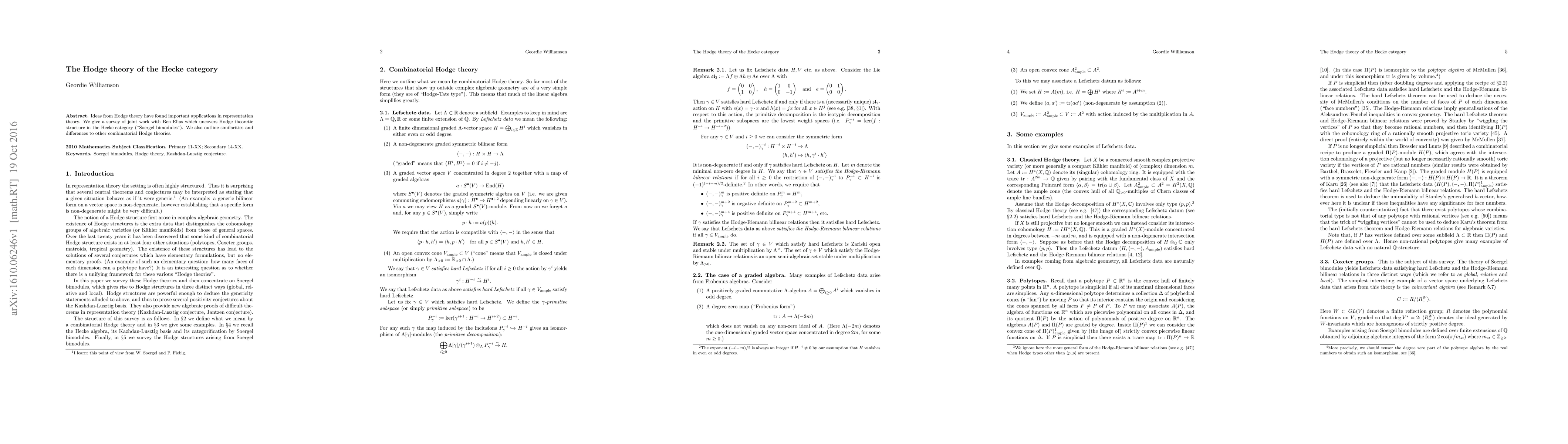 Ideas from Hodge theory have found important applications in representation theory. We give a survey of joint work with Ben Elias which uncovers Hodge theoretic structure in the Hecke category ("Soergel bimodules"). We also outline similarities and differences to other combinatorial Hodge theories.
