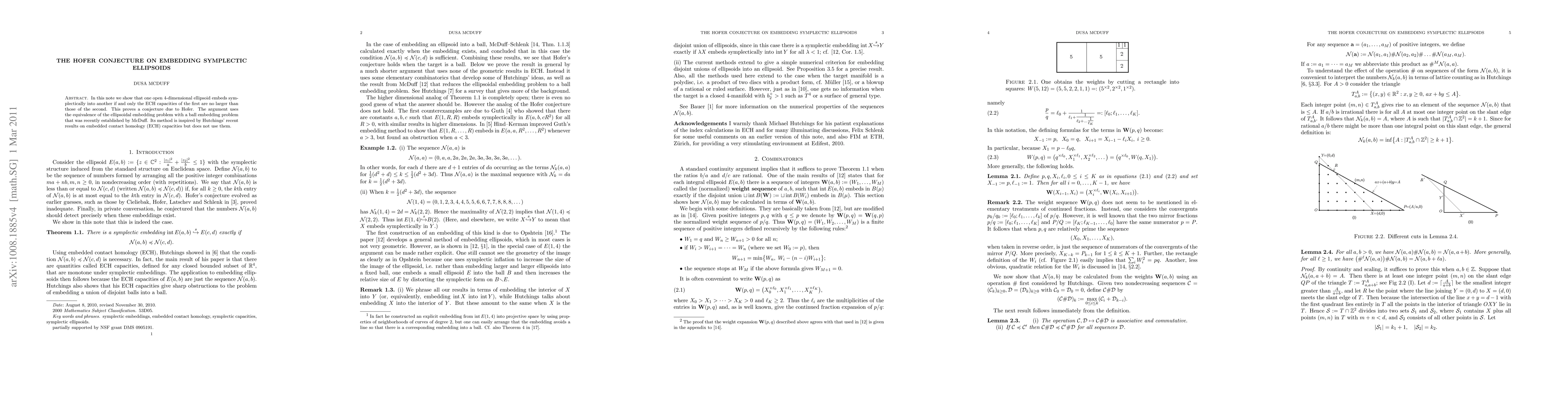 Researchers prove Hofer's conjecture that an ellipsoid can embed symplectically into another if its ECH capacities are no larger than the host's; this resolves a long-standing problem in symplectic geometry.