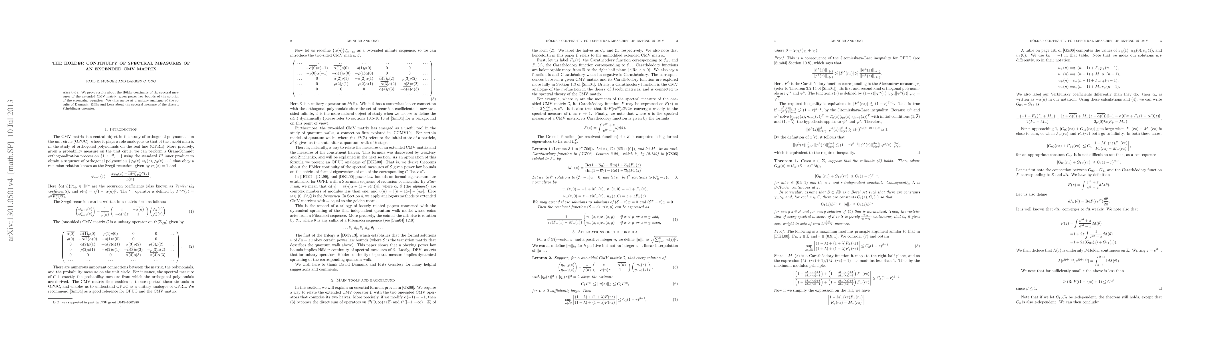 This paper proves H\"older continuity of spectral measures for an extended CMV matrix under power law bounds for eigenvalue solutions. It establishes a unitary analogue of results previously obtained for the discrete Schr\"odinger operator by Damanik, Killip, and Lenz.