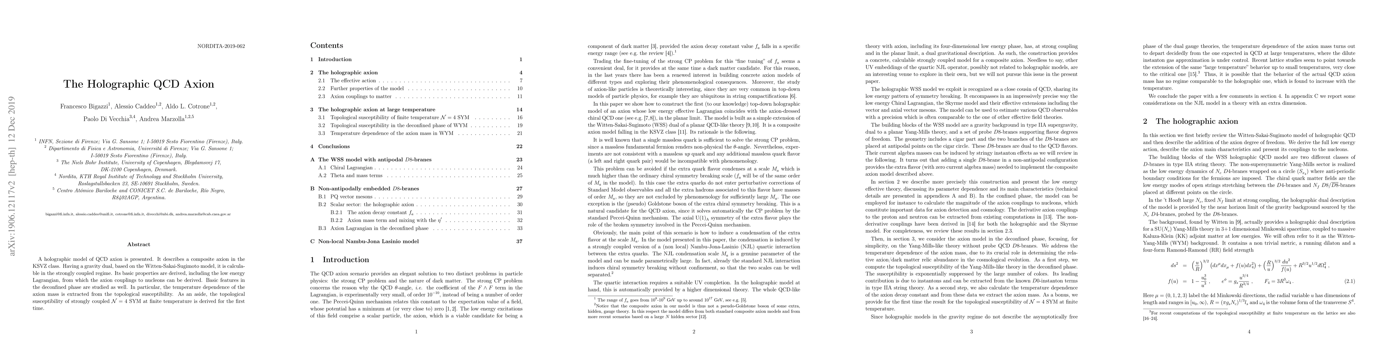 This paper presents a holographic QCD axion model based on the Witten-Sakai-Sugimoto model, enabling calculations in the strongly coupled regime. It derives the low energy Lagrangian and axion couplings to nucleons, and studies the temperature dependence of the axion mass in the deconfined phase.
