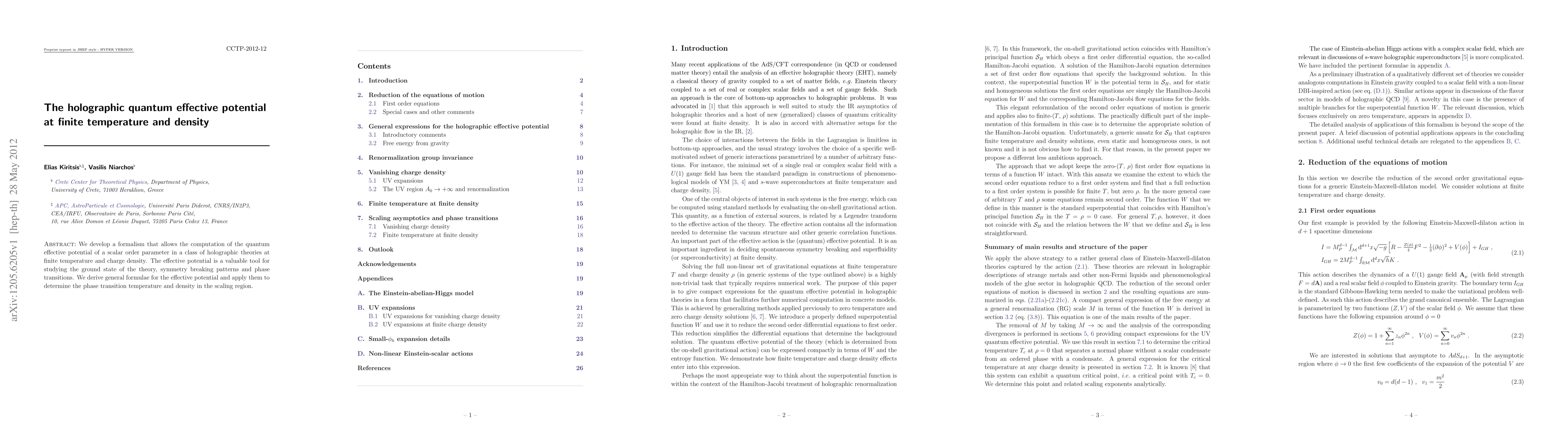 Researchers developed a method to calculate the quantum effective potential in holographic theories at finite temperature and density, helping to understand phase transitions and ground states.
