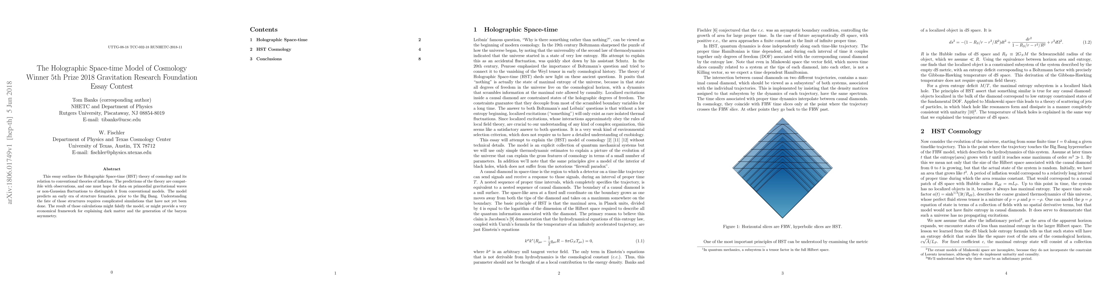 This essay outlines the Holographic Space-time (HST) theory of cosmology and its relation to conventional theories of inflation. The predictions of the theory are compatible with observations, and one must hope for data on primordial gravitational waves or non-Gaussian fluctuations to distinguish it from conventional models. The model predicts an early era of structure formation, prior to the Big Bang. Understanding the fate of those structures requires complicated simulations that have not yet been done. The result of those calculations might falsify the model, or might provide a very economical framework for explaining dark matter and the generation of the baryon asymmetry.