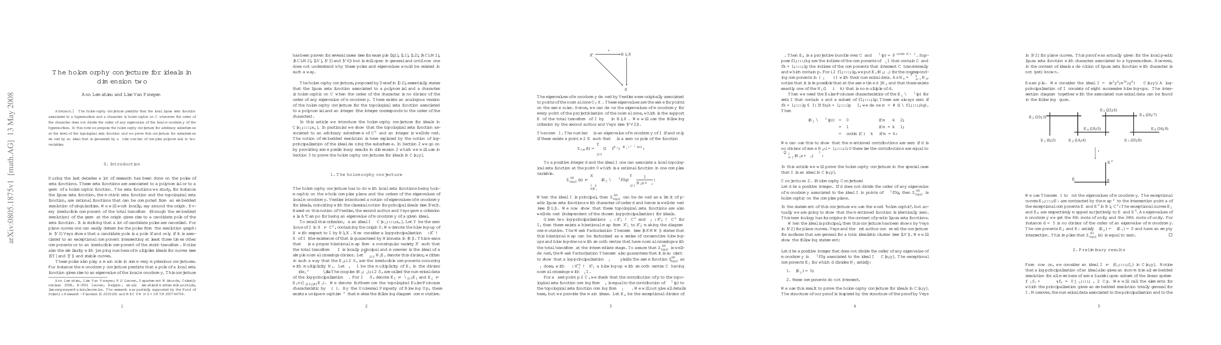 The holomorphy conjecture for ideals in dimension two extends the prediction that the local Igusa zeta function is holomorphic under certain conditions to arbitrary subschemes, and it is proven true for subschemes defined by ideals generated by a finite number of polynomials in two variables.