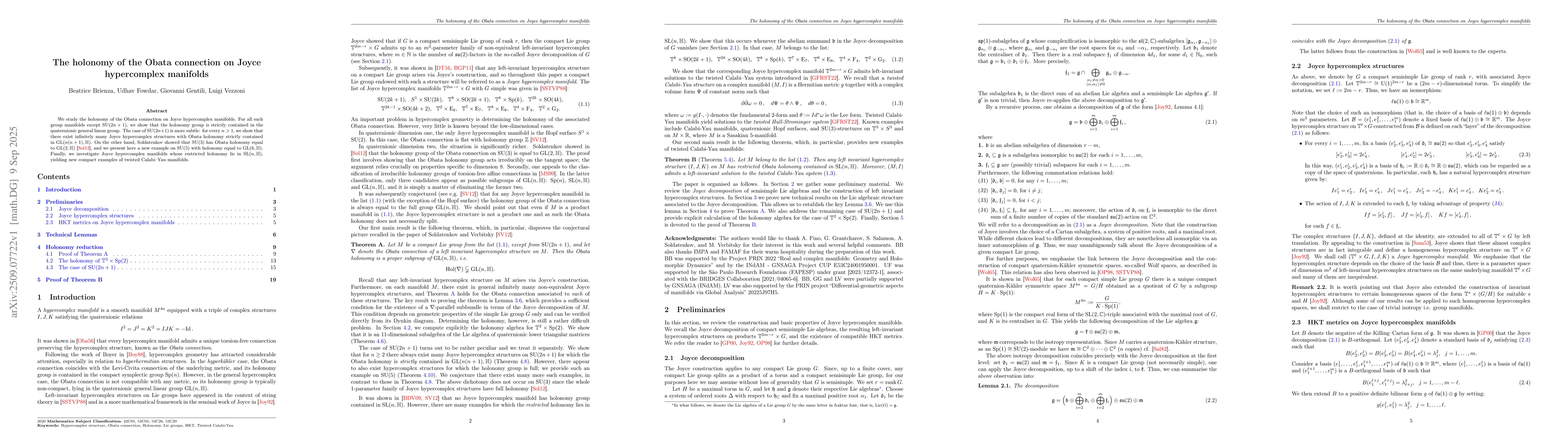 We study the holonomy of the Obata connection on Joyce hypercomplex manifolds. For all such group manifolds except $\mathrm{SU}(2n+1)$, we show that the holonomy group is strictly contained in the quaternionic general linear group. The case of $\mathrm{SU}(2n+1)$ is more subtle: for every $n>1$, we show that there exist infinitely many Joyce hypercomplex structures with Obata holonomy strictly contained in $\mathrm{GL}(n(n+1),\mathbb{H})$. On the other hand, Soldatenkov showed that $\mathrm{SU}(3)$ has Obata holonomy equal to $\mathrm{GL}(2,\mathbb{H})$ \cite{Sol}, and we present here a new example on $\mathrm{SU}(5)$ with holonomy equal to $\mathrm{GL}(6,\mathbb{H})$. Finally, we investigate Joyce hypercomplex manifolds whose restricted holonomy lie in $\mathrm{SL}(n, \mathbb{H})$, yielding new compact examples of twisted Calabi-Yau manifolds.