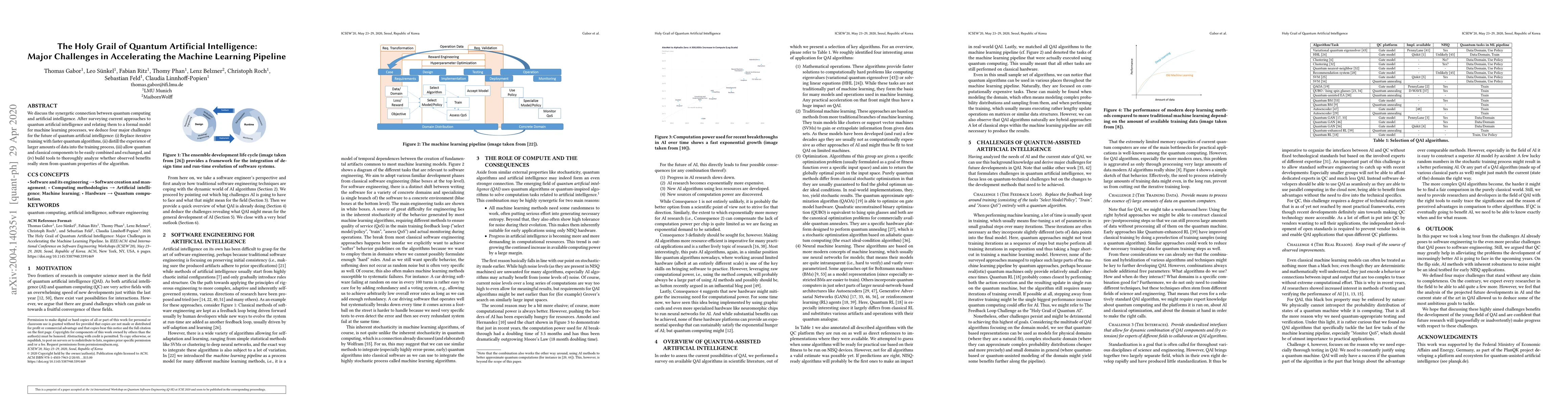 This paper explores the intersection of quantum computing and artificial intelligence, identifying four key challenges: faster quantum algorithms for training, efficient data integration, seamless quantum-classical component integration, and tools for verifying quantum-specific benefits.