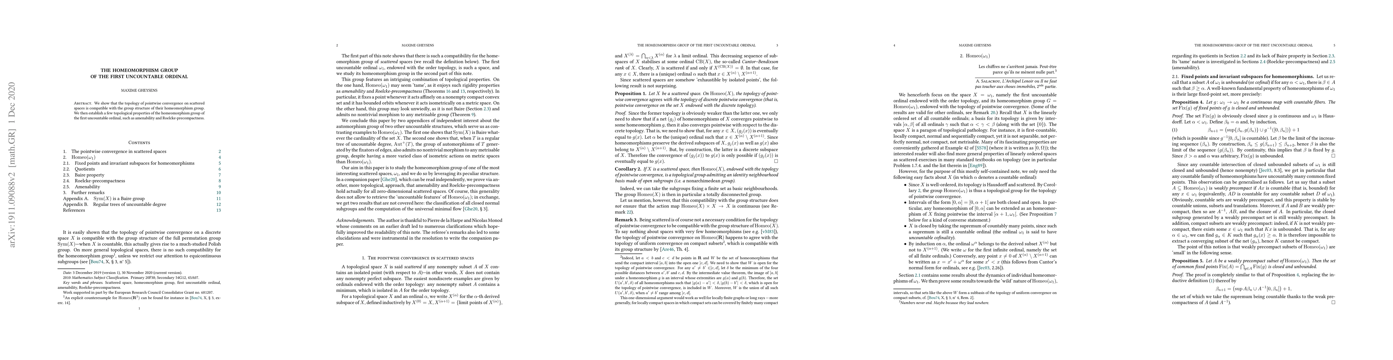 We show that the topology of pointwise convergence on scattered spaces is compatible with the group structure of their homeomorphism group. We then establish a few topological properties of the homeomorphism group of the first uncountable ordinal, such as amenability and Roelcke-precompactness.