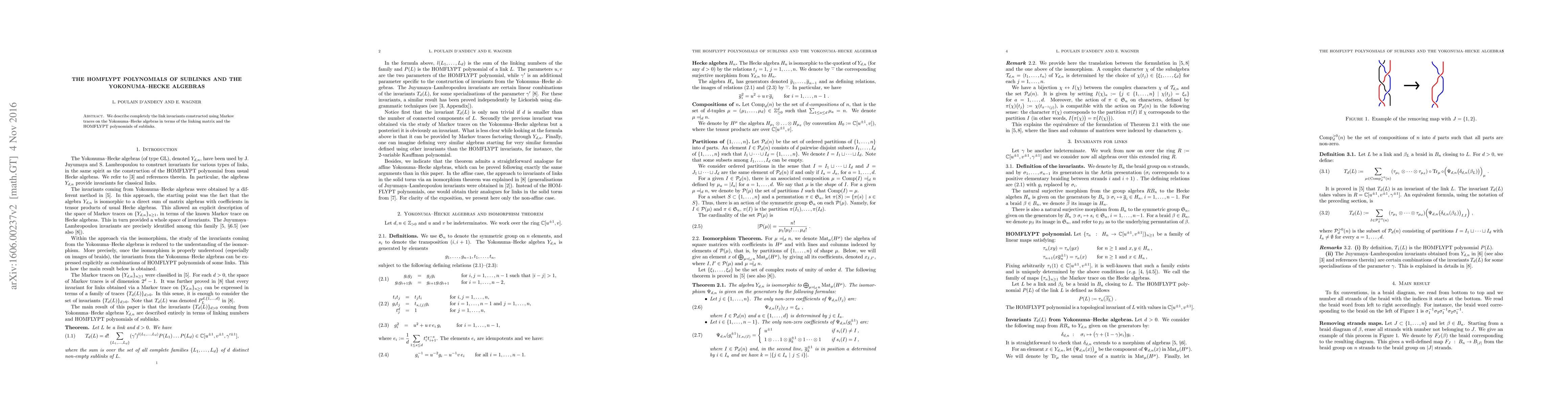 This paper explores link invariants derived from Markov traces on Yokonuma-Hecke algebras, showing their equivalence to HOMFLYPT polynomials of sublinks via the linking matrix. The findings provide a comprehensive mapping between these algebraic structures and knot theory.