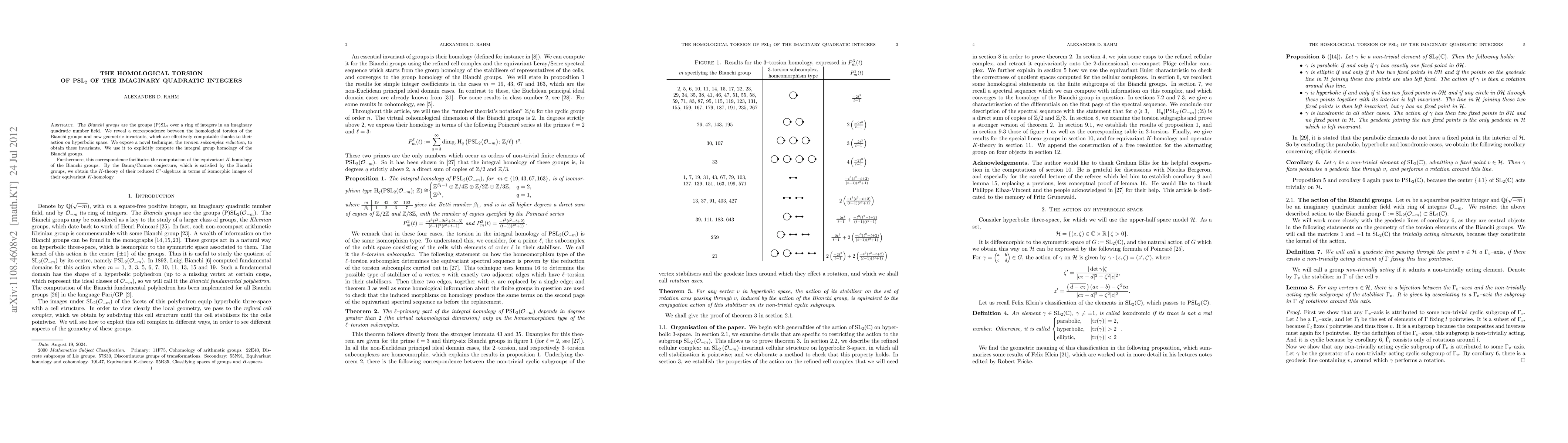 Denote by Q(sqrt{-m}), with m a square-free positive integer, an imaginary quadratic number field, and by A its ring of integers. The Bianchi groups are the groups SL_2(A). We reveal a correspondence between the homological torsion of the Bianchi groups and new geometric invariants, which are effectively computable thanks to their action on hyperbolic space. We expose a novel technique, the torsion subcomplex reduction, to obtain these invariants. We use it to explicitly compute the integral group homology of the Bianchi groups. Furthermore, this correspondence facilitates the computation of the equivariant K-homology of the Bianchi groups. By the Baum/Connes conjecture, which is verified by the Bianchi groups, we obtain the K-theory of their reduced C*-algebras in terms of isomorphic images of their equivariant K-homology.