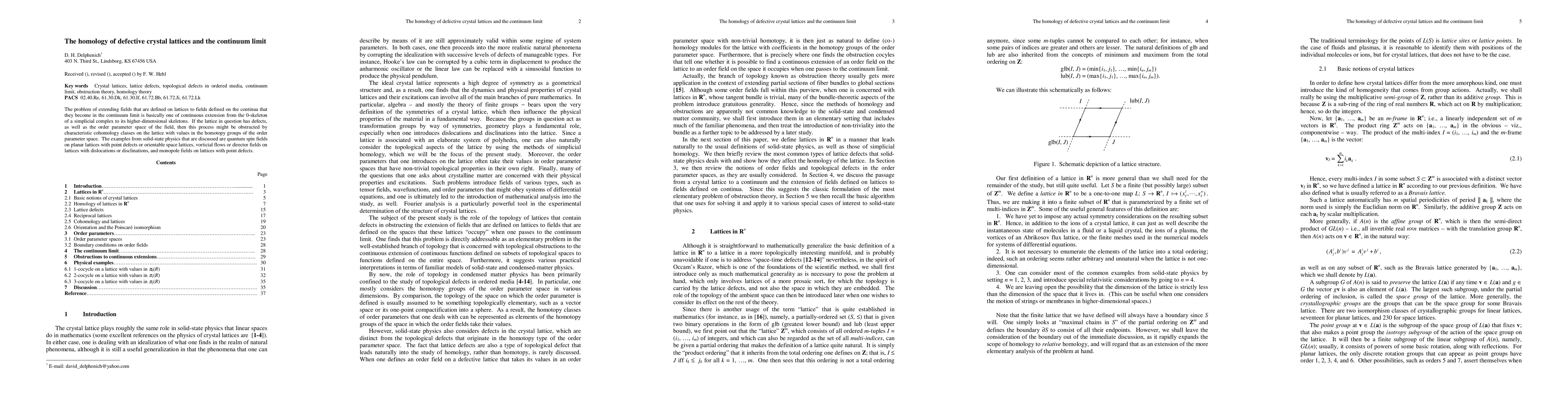 The problem of extending fields that are defined on lattices to fields defined on the continua that they become in the continuum limit is basically one of continuous extension from the 0-skeleton of a simplicial complex to its higher-dimensional skeletons. If the lattice in question has defects, as well as the order parameter space of the field, then this process might be obstructed by characteristic cohomology classes on the lattice with values in the homotopy groups of the order parameter space. The examples from solid-state physics that are discussed are quantum spin fields on planar lattices with point defects or orientable space lattices, vorticial flows or director fields on lattices with dislocations or disclinations, and monopole fields on lattices with point defects.