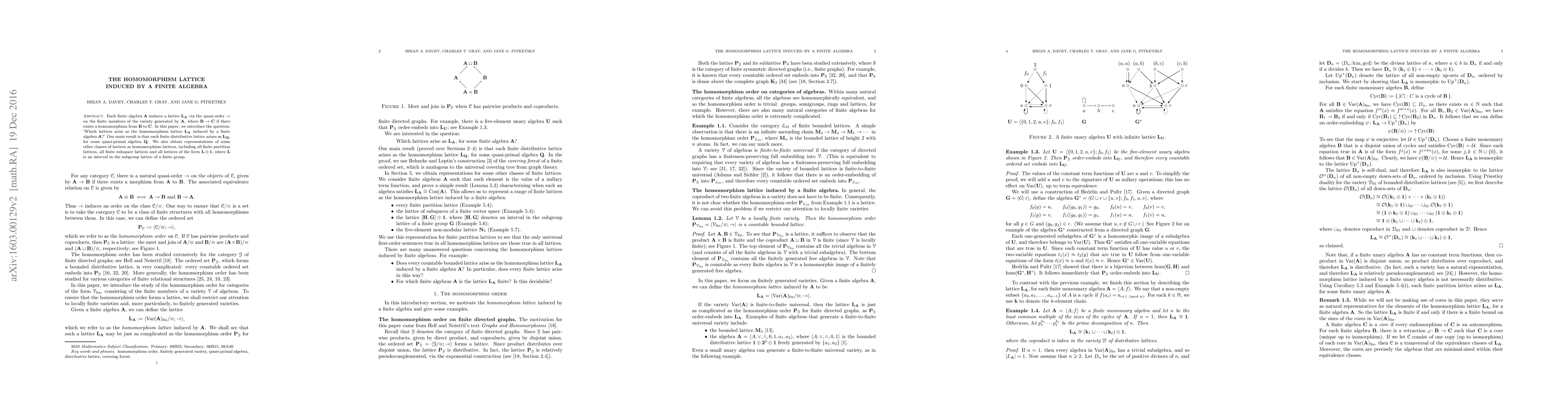 Each finite algebra $\mathbf A$ induces a lattice~$\mathbf L_{\mathbf A}$ via the quasi-order~$\to$ on the finite members of the variety generated by~$\mathbf A$, where $\mathbf B \to \mathbf C$ if there exists a homomorphism from $\mathbf B$ to~$\mathbf C$. In this paper, we introduce the question: `Which lattices arise as the homomorphism lattice $\mathbf L_{\mathbf A}$ induced by a finite algebra $\mathbf A$?' Our main result is that each finite distributive lattice arises as~$\mathbf L_{\mathbf Q}$, for some quasi-primal algebra~$\mathbf Q$. We also obtain representations of some other classes of lattices as homomorphism lattices, including all finite partition lattices, all finite subspace lattices and all lattices of the form $\mathbf L\oplus \mathbf 1$, where $\mathbf L$ is an interval in the subgroup lattice of a finite group.