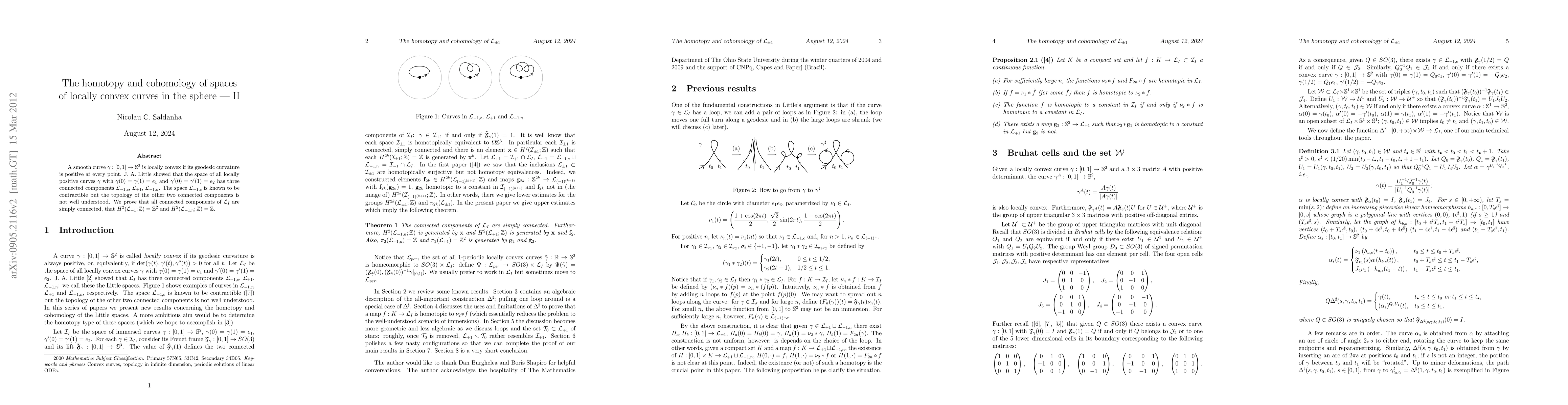 A smooth curve $\gamma: [0,1] \to S^2$ is locally convex if its geodesic curvature is positive at every point. J. A. Little showed that the space of all locally positive curves $\gamma$ with $\gamma(0) = \gamma(1) = e_1$ and $\gamma'(0) = \gamma'(1) = e_2$ has three connected components $L_{-1,c}$, $L_{+1}$, $L_{-1,n}$. The space $L_{-1,c}$ is known to be contractible but the topology of the other two connected components is not well understood. We prove that all connected components of $L_I$ are simply connected, that $H^2(L_{+1};Z) = Z^2$ and $H^2(L_{-1,n};Z) = Z$.