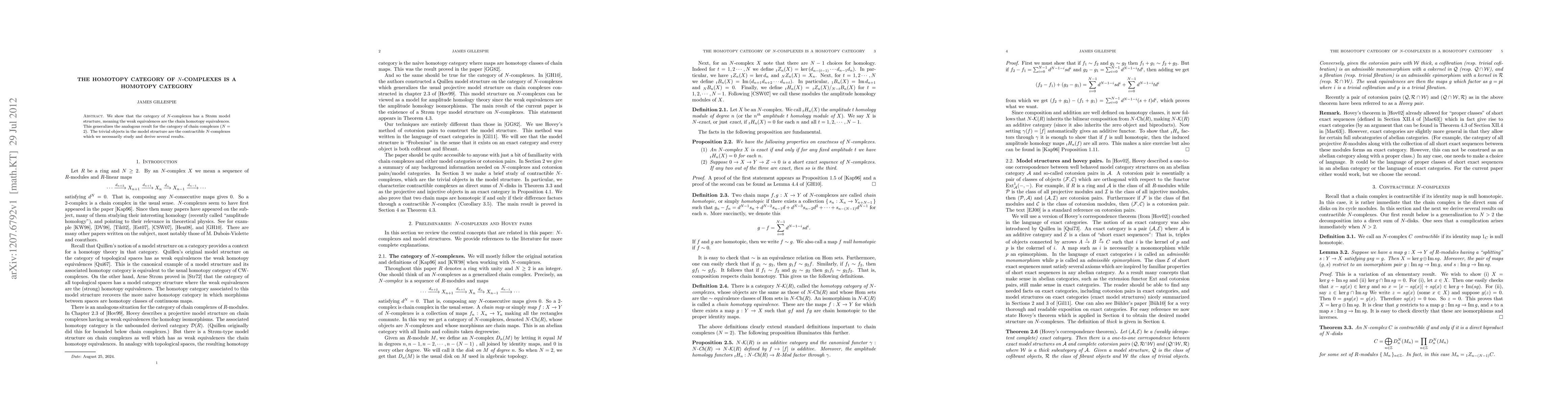 Summary: The paper establishes a Ström model structure for the category of N-complexes, where weak equivalences correspond to chain homotopy equivalences, extending the existing result for chain complexes. It also examines the properties and implications of contractible N-complexes within this framework.