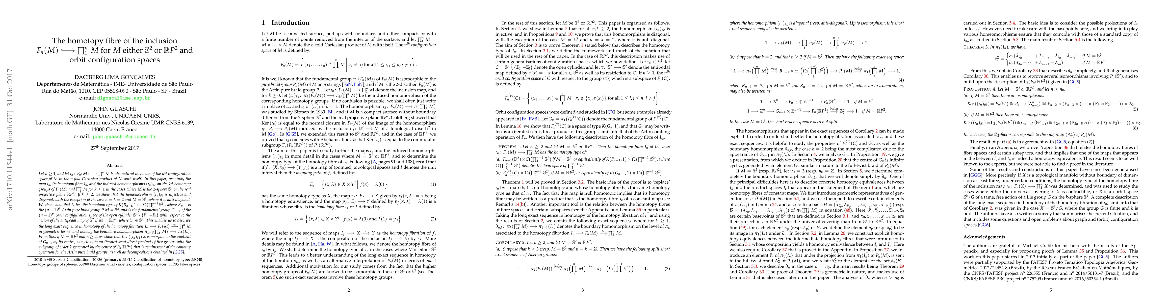 Let $n\geq 1$, and let $\iota\_{n}\colon\thinspace F\_{n}(M) \longrightarrow \prod\_{1}^{n} M$ be the natural inclusion of the $n$th configuration space of $M$ in the $n$-fold Cartesian product of $M$ with itself. In this paper, we study the map $\iota\_{n}$, its homotopy fibre $I\_{n}$, and the induced homomorphisms $(\iota\_{n})\_{#k}$ on the $k$th homotopy groups of $F\_{n}(M)$ and $\prod\_{1}^{n} M$ for $k\geq 1$ in the cases where $M$ is the $2$-sphere $\mathbb{S}^{2}$ or the real projective plane $\mathbb{R}P^{2}$. If $k\geq 2$, we show that the homomorphism $(\iota\_{n})\_{#k}$ is injective and diagonal, with the exception of the case $n=k=2$ and $M=\mathbb{S}^{2}$, where it is anti-diagonal. We then show that $I\_{n}$ has the homotopy type of $K(R\_{n-1},1) \times \Omega(\prod\_{1}^{n-1} \mathbb{S}^{2})$, where $R\_{n-1}$ is the $(n-1)$th Artin pure braid group if $M=\mathbb{S}^{2}$, and is the fundamental group $G\_{n-1}$ of the $(n-1)$th orbit configuration space of the open cylinder $\mathbb{S}^{2}\setminus \{\widetilde{z}\_{0}, -\widetilde{z}\_{0}\}$ with respect to the action of the antipodal map of $\mathbb{S}^{2}$ if $M=\mathbb{R}P^{2}$, where $\widetilde{z}\_{0}\in \mathbb{S}^{2}$. This enables us to describe the long exact sequence in homotopy of the homotopy fibration $I\_{n} \longrightarrow F\_n(M) \stackrel{\iota\_{n}}{\longrightarrow} \prod\_{1}^{n} M$ in geometric terms, and notably the boundary homomorphism $\pi\_{k+1}(\prod\_{1}^{n} M)\longrightarrow \pi\_{k}(I\_{n})$. From this, if $M=\mathbb{R}P^{2}$ and $n\geq 2$, we show that $\ker{(\iota\_{n})\_{#1}}$ is isomorphic to the quotient of $G\_{n-1}$ by its centre, as well as to an iterated semi-direct product of free groups with the subgroup of order $2$ generated by the centre of $P\_{n}(\mathbb{R}P^{2})$ that is reminiscent of the combing operation for the Artin pure braid groups, as well as decompositions obtained in a previous paper.