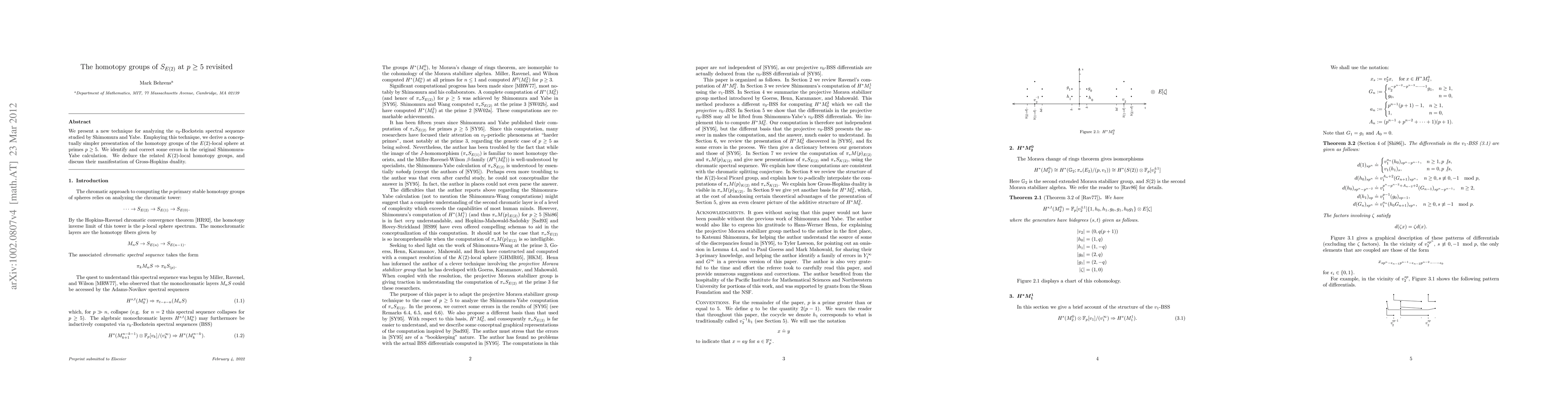This paper introduces a new method to analyze the v_0-Bockstein spectral sequence, leading to a simpler presentation of the homotopy groups of E(2)-local spheres for primes p > 3, correcting errors in previous calculations and discussing their implications for Gross-Hopkins duality.