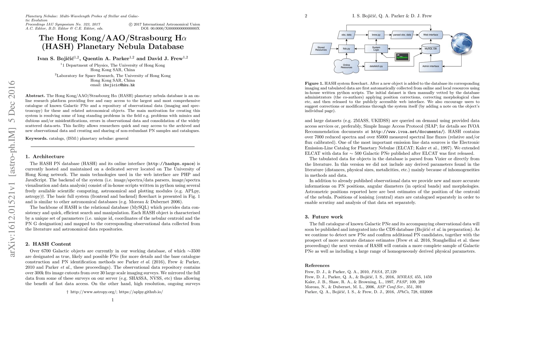 The Hong Kong/AAO/Strasbourg Halpha (HASH) planetary nebula database is an online research platform providing free and easy access to the largest and most comprehensive catalogue of known Galactic planetary nebulae (PNe) and a repository of observational data (imaging and spectroscopy) for these and related astronomical objects. The main motivation for creating this system is resolving some of long standing problems in the field e.g. problems with mimics and dubious and/or misidentifications, errors in observational data and consolidation of the widely scattered data-sets. This facility allows researchers quick and easy access to the archived and new observational data and creating and sharing of non-redundant PN samples and catalogues.