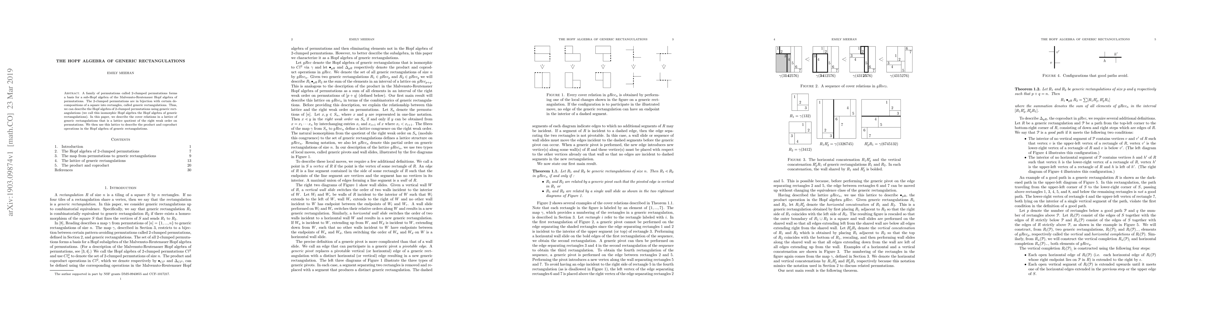 This paper investigates the Hopf algebra of generic rectangulations, a sub-Hopf algebra based on 2-clumped permutations, which correspond to specific decompositions of squares into rectangles. It describes cover relations in a lattice derived from the right weak order on permutations and uses this lattice to define the product and coproduct operations within the Hopf algebra.