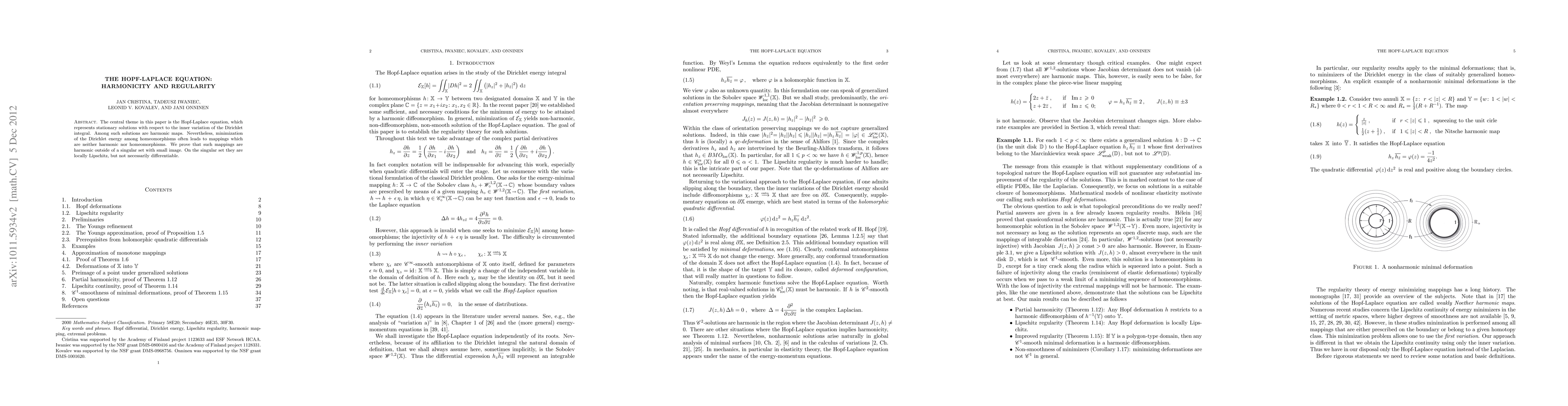 This paper investigates the Hopf-Laplace equation, focusing on stationary solutions and harmonic maps. It proves that mappings minimizing Dirichlet energy, though not necessarily harmonic or homeomorphic, are harmonic outside a singular set with small measure, and locally Lipschitz on the singular set.