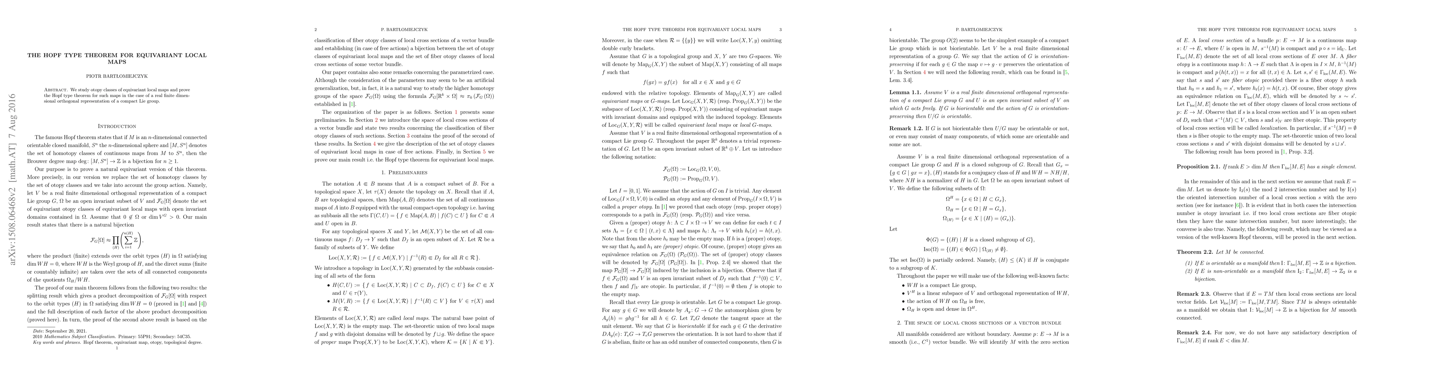 Summary: This paper investigates otopy classes of equivariant local maps and establishes a Hopf type theorem for these maps within the context of real finite-dimensional orthogonal representations of compact Lie groups.