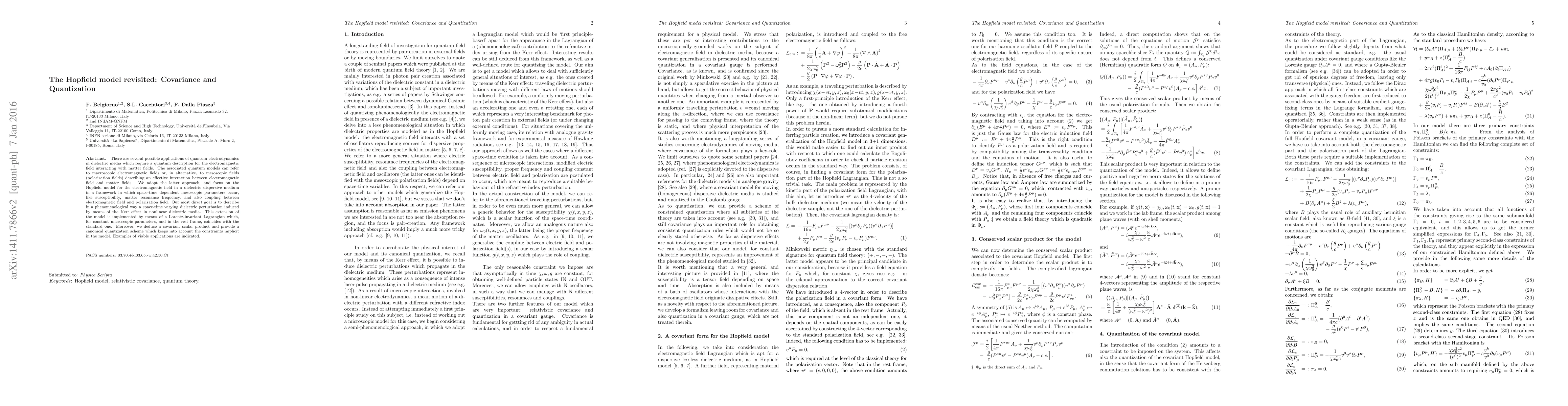 There are several possible applications of quantum electrodynamics in dielectric media which require a quantum description for the electromagnetic field interacting with matter fields. The associated quantum models can refer to macroscopic electromagnetic fields or, in alternative, to mesoscopic fields (polarization fields) describing an effective interaction between electromagnetic field and matter fields. We adopt the latter approach, and focus on the Hopfield model for the electromagnetic field in a dielectric dispersive medium in a framework in which space-time dependent mesoscopic parameters occur, like susceptibility, matter resonance frequency, and also coupling between electromagnetic field and polarization field. Our most direct goal is to describe in a phenomenological way a space-time varying dielectric perturbation induced by means of the Kerr effect in nonlinear dielectric media. This extension of the model is implemented by means of a Lorentz-invariant Lagrangian which, for constant microscopic parameters, and in the rest frame, coincides with the standard one. Moreover, we deduce a covariant scalar product and provide a covariant quantization scheme which keeps into account the constraints implicit in the model. Examples of viable applications are indicated.