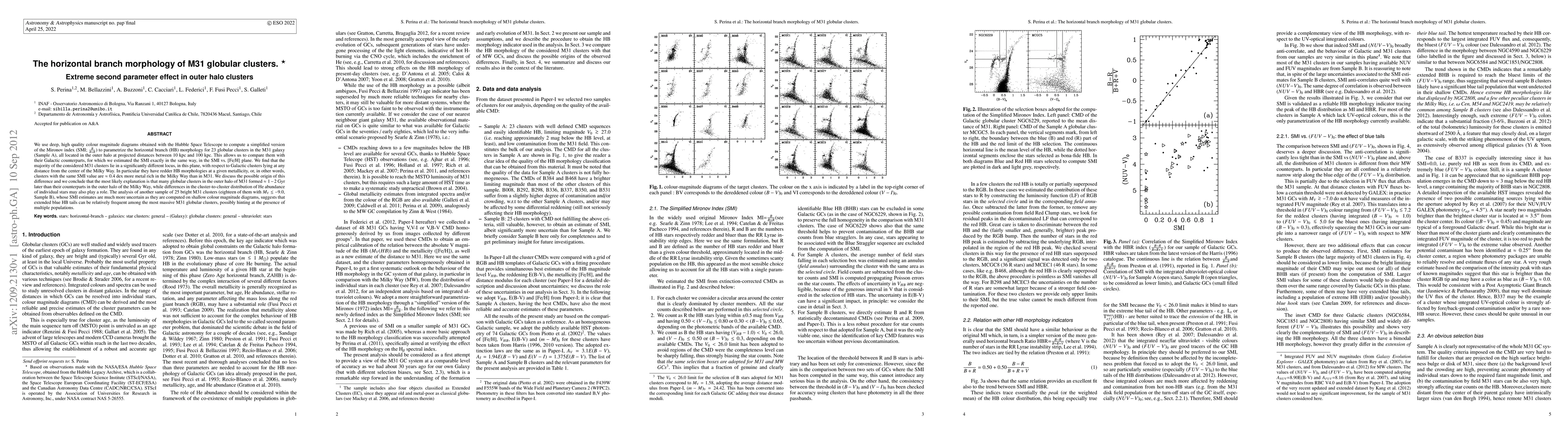 The study examines 48 globular clusters in M31's outer halo, finding they have redder horizontal branches than similar metallicity Galactic clusters, suggesting M31 clusters formed later. Massive M31 clusters may have extended blue HB tails, indicating multiple populations.