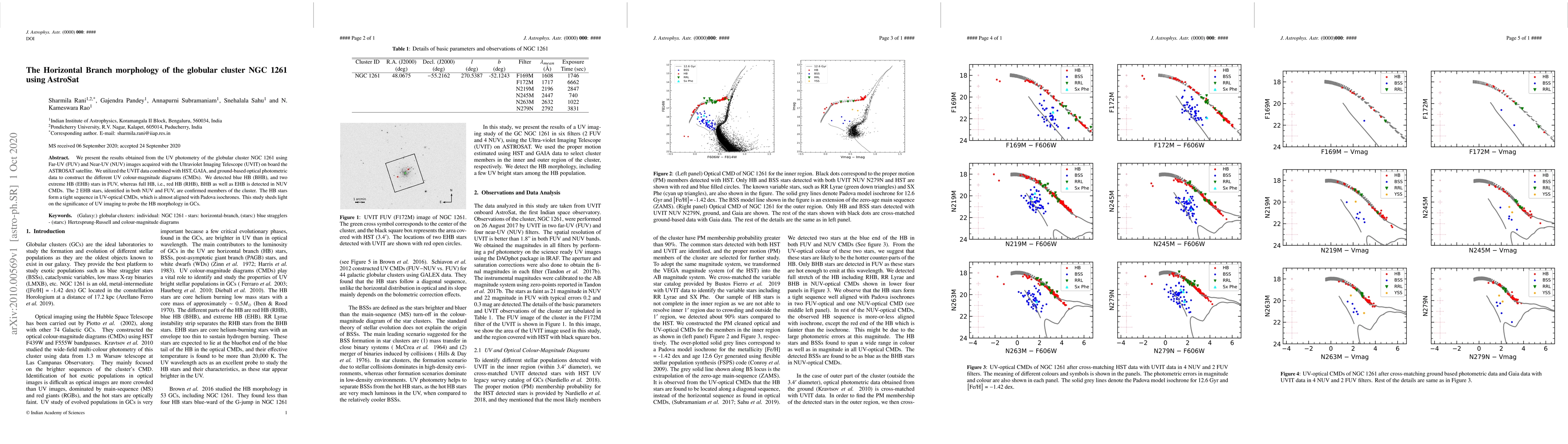 The study utilized UV photometry from the Ultraviolet Imaging Telescope (UVIT) onboard the Astrosat satellite, combined with HST, GAIA, and ground-based optical photometric data to construct UV colour-magnitude diagrams (CMDs) for the globular cluster NGC 1261.