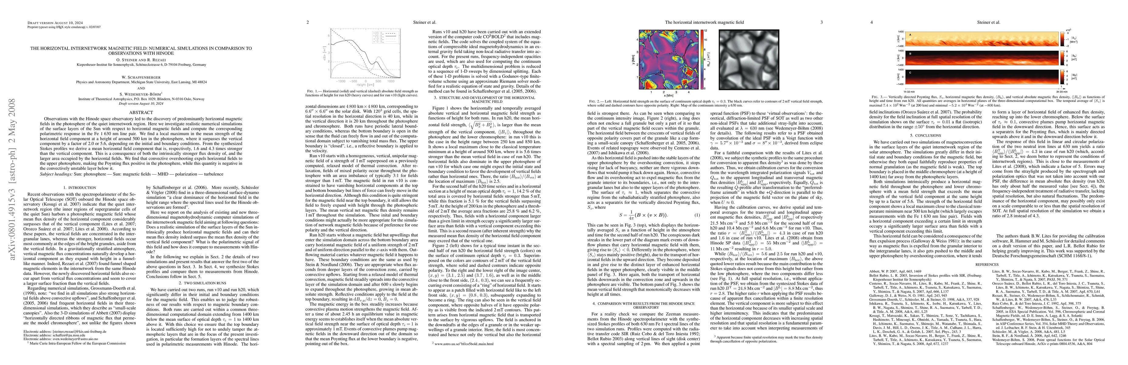 This study uses numerical simulations to analyze the horizontal magnetic fields in the Sun's photosphere, confirming Hinode observations. It finds a local maximum in horizontal field strength at 500 km, 1.6 to 4.3 times stronger than vertical fields, due to higher flux density and area occupied. Convective overshooting pushes horizontal fields upwards, altering Poynting flux.