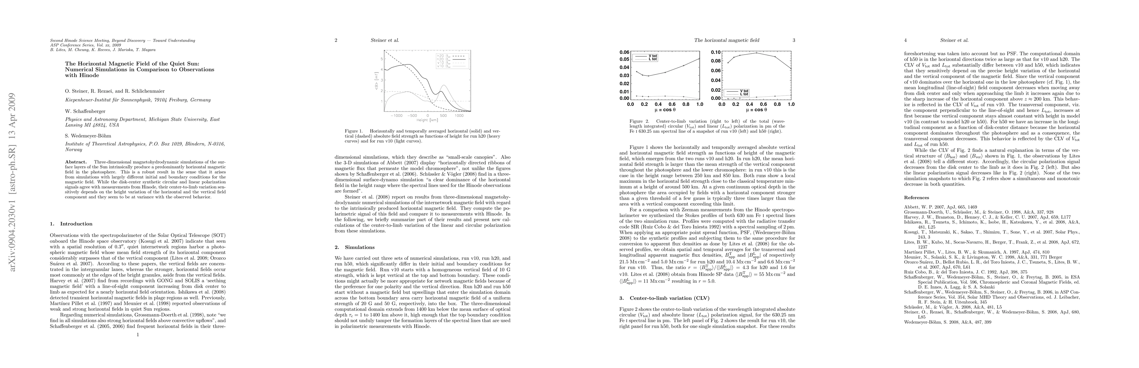 Numerical simulations of the Sun's surface layers produce a predominantly horizontal magnetic field, but center-to-limb variation depends on height variations of both horizontal and vertical components, differing from observed behavior.