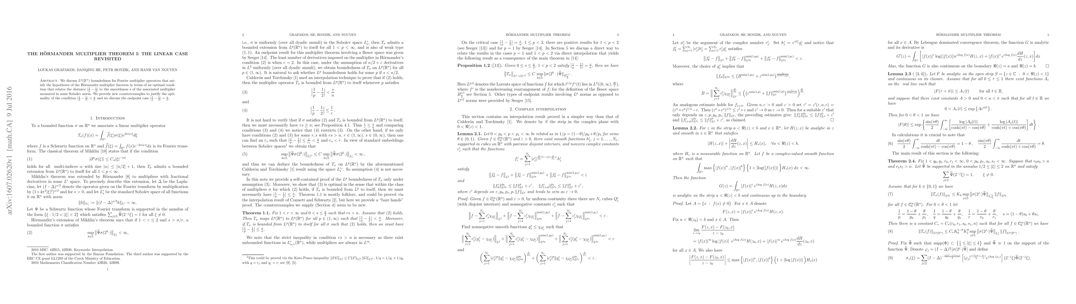 We discuss $L^p(\mathbb R^n)$ boundedness for Fourier multiplier operators that satisfy the hypotheses of the H\"ormander multiplier theorem in terms of an optimal condition that relates the distance $|\frac 1p-\frac12|$ to the smoothness $s$ of the associated multiplier measured in some Sobolev norm. We provide new counterexamples to justify the optimality of the condition $|\frac 1p-\frac12|<\frac sn$ and we discuss the endpoint case $|\frac 1p-\frac12|=\frac sn$.