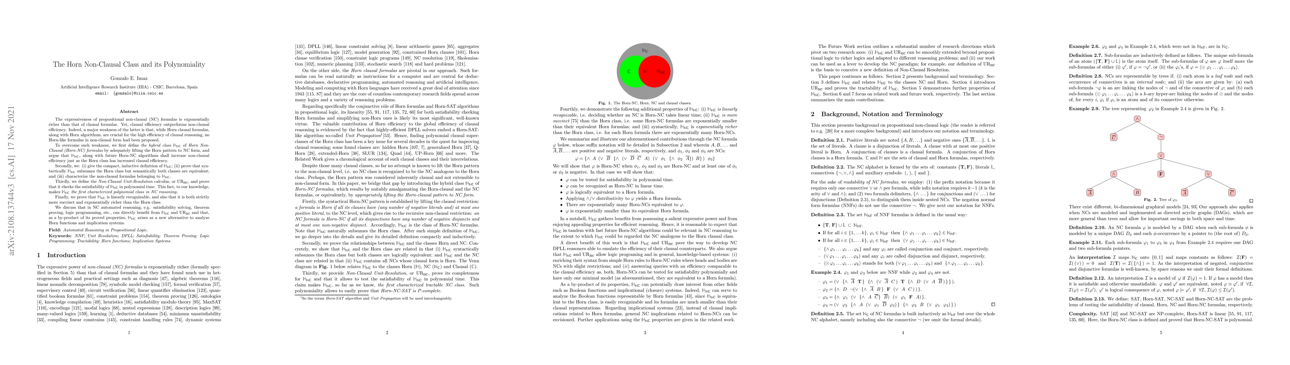 This paper introduces the Horn Non-Clausal (Horn-NC) class, a hybrid formula class that lifts the efficiency of Horn clauses into non-clausal form, and proves its polynomial-time satisfiability checking via the Non-Clausal Unit-Resolution calculus. It demonstrates that Horn-NC formulas are polynomially recognizable, succincter, and exponentially richer than Horn clauses, suggesting significant benefits for automated reasoning tasks.