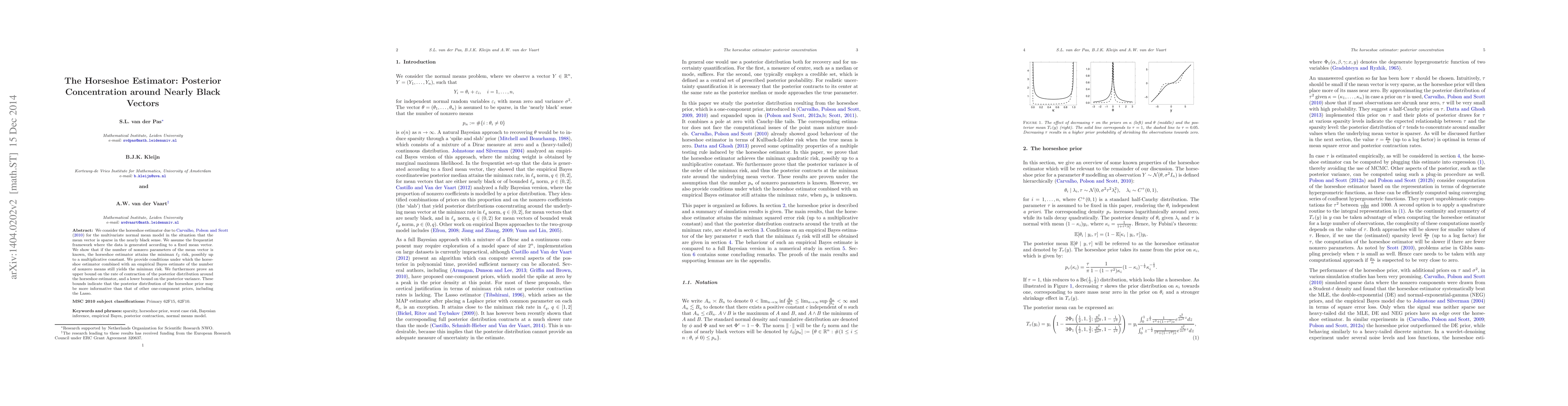 The horseshoe estimator achieves minimax $\ell_2$ risk for sparse multivariate normal mean vectors under a frequentist framework, with conditions ensuring its effectiveness even when estimating the number of nonzero parameters. It demonstrates superior posterior concentration compared to other one-component priors like the Lasso.